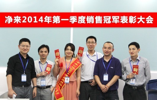 4月22日下午,在行政主管的组织下,深圳市净来天祥环保科技有限公司整个营销中心的同事一起参加了2014年第一季度净来净水器销售冠军表彰大会。会上表彰了黄景帅、李贵友、聂乾坤3个季度冠军和周小咪月度冠军。