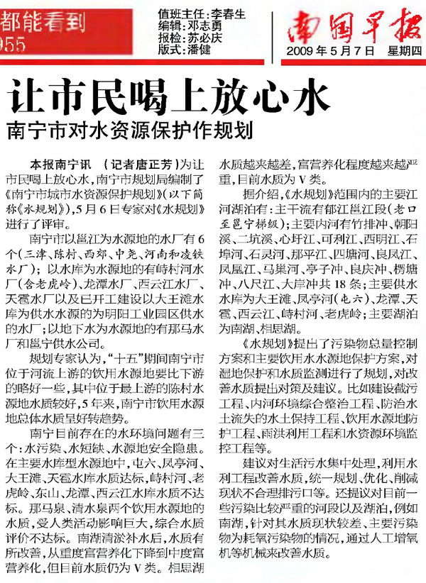 剪报图片:南国早报世界水周珍惜水资源