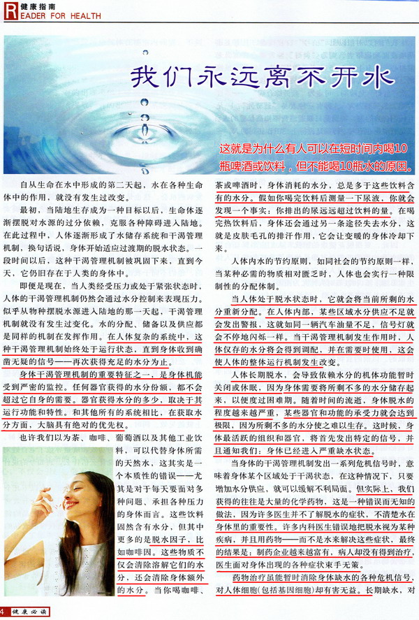 剪报图片:健康指南 我们永远离不开水