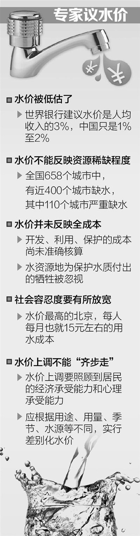 谷树忠:水价上涨是大趋势,但要照顾到居民的经济承受能力和心理承受力。并且,水价上调也不能“齐步走”,应该根据用途、用量、季节、水源等不同,实行差别化水价。